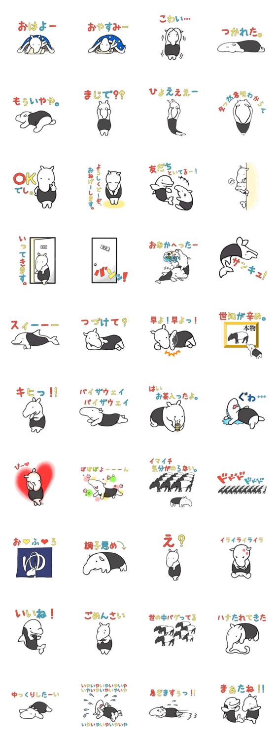 バクだっつーの BARU コメントをどうぞ 体の白黒模様が反転したバクの子、同じ境遇のイルカと仲良しです。使いやすい文字でまとめました。 このスタンプどう思う?!↓クリックで投票♪好き (0)かわいい (0)かっこいい (0)おもしろい (0)使いやすそう (0)欲しい (0)萌え (0)ほっこりする (0)おしゃれ (0)ゆるい (0)こわい (0)ウザい (0)キモい (0)ムカつく (0)持ってる (0)癒される (0)セクシー (0)個性的 (0)私は買わない (0)誰かプレゼントして! (0) 購入・プレゼントする Facebookでシェア Twitterでシェア