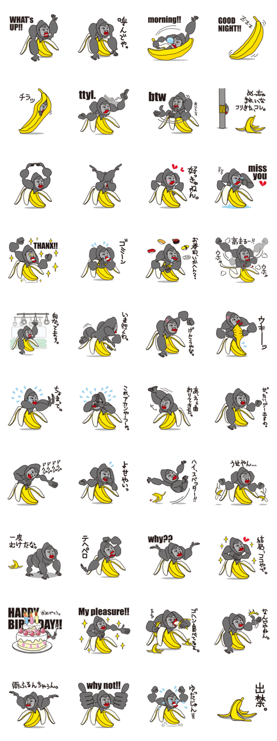 バナゴリラ tinkuroh コメントをどうぞ お父さんはゴリラ、お母さんはバナナ。 英語と関西弁が話せます。 かまってあげてください。ありがとうございます。 このスタンプどう思う?!↓クリックで投票♪好き (0)かわいい (0)かっこいい (0)おもしろい (0)使いやすそう (0)欲しい (0)萌え (0)ほっこりする (0)おしゃれ (0)ゆるい (0)こわい (0)ウザい (0)キモい (0)ムカつく (0)持ってる (0)癒される (0)セクシー (0)個性的 (0)私は買わない (0)誰かプレゼントして! (0) 購入・プレゼントする Facebookでシェア Twitterでシェア