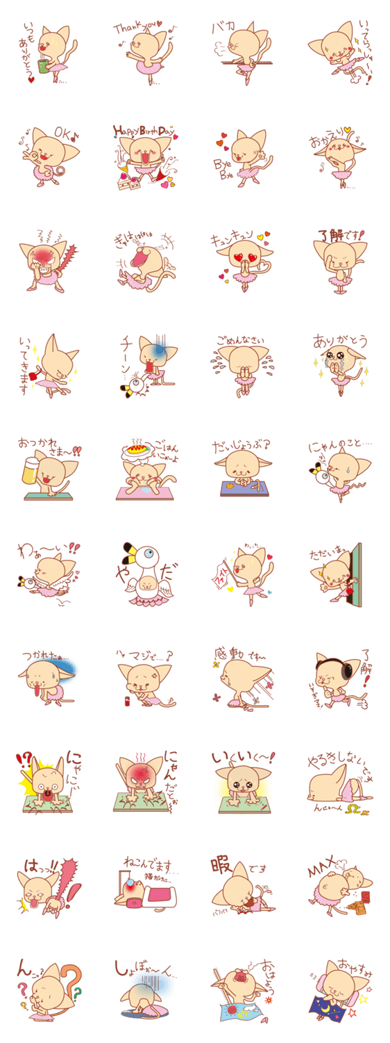 バレリーナ猫 〈 バレリーにゃ 〉 竜雅 コメントをどうぞ 名前はにゃーこ。バレリーナに憧れを抱いている夢がたっぷりの猫。まだ本物になる日は程遠いのが現実です。心の優しい性格だが純粋ゆえに態度がすぐ表に出てしまいます。 このスタンプどう思う?!↓クリックで投票♪好き (0)かわいい (0)かっこいい (0)おもしろい (0)使いやすそう (0)欲しい (0)萌え (0)ほっこりする (0)おしゃれ (0)ゆるい (0)こわい (0)ウザい (0)キモい (0)ムカつく (0)持ってる (0)癒される (0)セクシー (0)個性的 (0)私は買わない (0)誰かプレゼントして! (0) 購入・プレゼントする Facebookでシェア Twitterでシェア