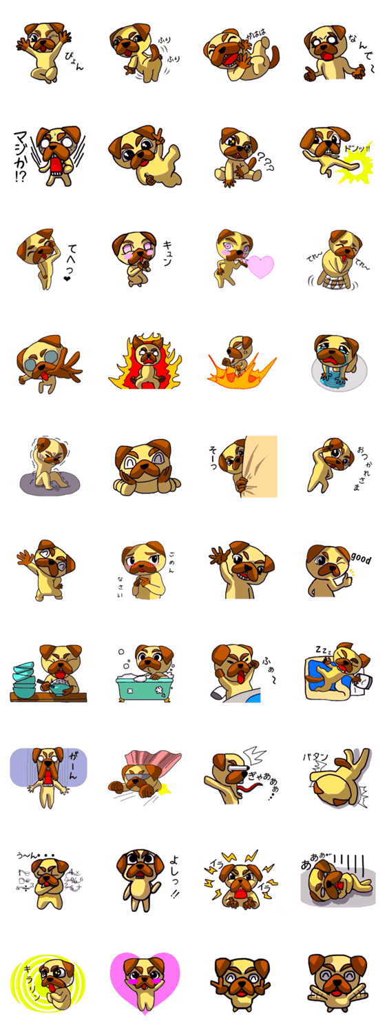 パグちゃん ヤナセ コメントをどうぞ パグのイラストを使用し「かわいく」「おもしろく」「使いやすく」作られたスタンプです。文字入りのものとイラストのみのものがあり、様々な場面で使用できます。 このスタンプどう思う?!↓クリックで投票♪好き (0)かわいい (0)かっこいい (0)おもしろい (0)使いやすそう (0)欲しい (0)萌え (0)ほっこりする (0)おしゃれ (0)ゆるい (0)こわい (0)ウザい (0)キモい (0)ムカつく (0)持ってる (0)癒される (0)セクシー (0)個性的 (0)私は買わない (0)誰かプレゼントして! (0) 購入・プレゼントする Facebookでシェア Twitterでシェア