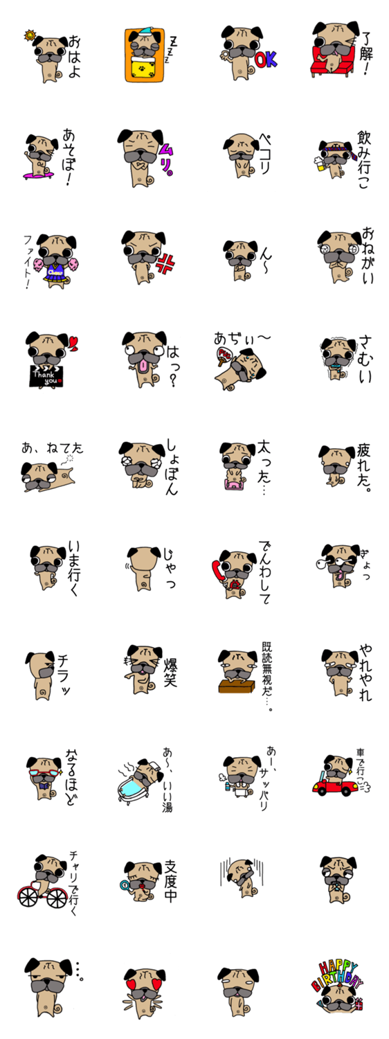 パグ美の日常 パグ美 コメントをどうぞ パグのパグ美の日常スタンプ* このスタンプどう思う?!↓クリックで投票♪好き (0)かわいい (0)かっこいい (0)おもしろい (0)使いやすそう (0)欲しい (0)萌え (0)ほっこりする (0)おしゃれ (0)ゆるい (0)こわい (0)ウザい (0)キモい (0)ムカつく (0)持ってる (0)癒される (0)セクシー (0)個性的 (0)私は買わない (0)誰かプレゼントして! (0) 購入・プレゼントする Facebookでシェア Twitterでシェア