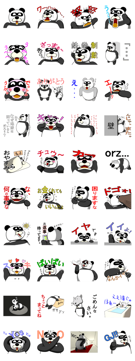 パンちゃん Studio Major7th コメントをどうぞ かわいいパンダのスタンプです。間抜けなヤツからムカつくヤツまでいろいろいます。性別は不明です。「ぱんだぁ」とか「ぱんちゃん」とも呼ばれます。 このスタンプどう思う?!↓クリックで投票♪好き (0)かわいい (0)かっこいい (0)おもしろい (0)使いやすそう (0)欲しい (0)萌え (0)ほっこりする (0)おしゃれ (0)ゆるい (0)こわい (0)ウザい (0)キモい (0)ムカつく (0)持ってる (0)癒される (0)セクシー (0)個性的 (0)私は買わない (0)誰かプレゼントして! (0) 購入・プレゼントする Facebookでシェア Twitterでシェア