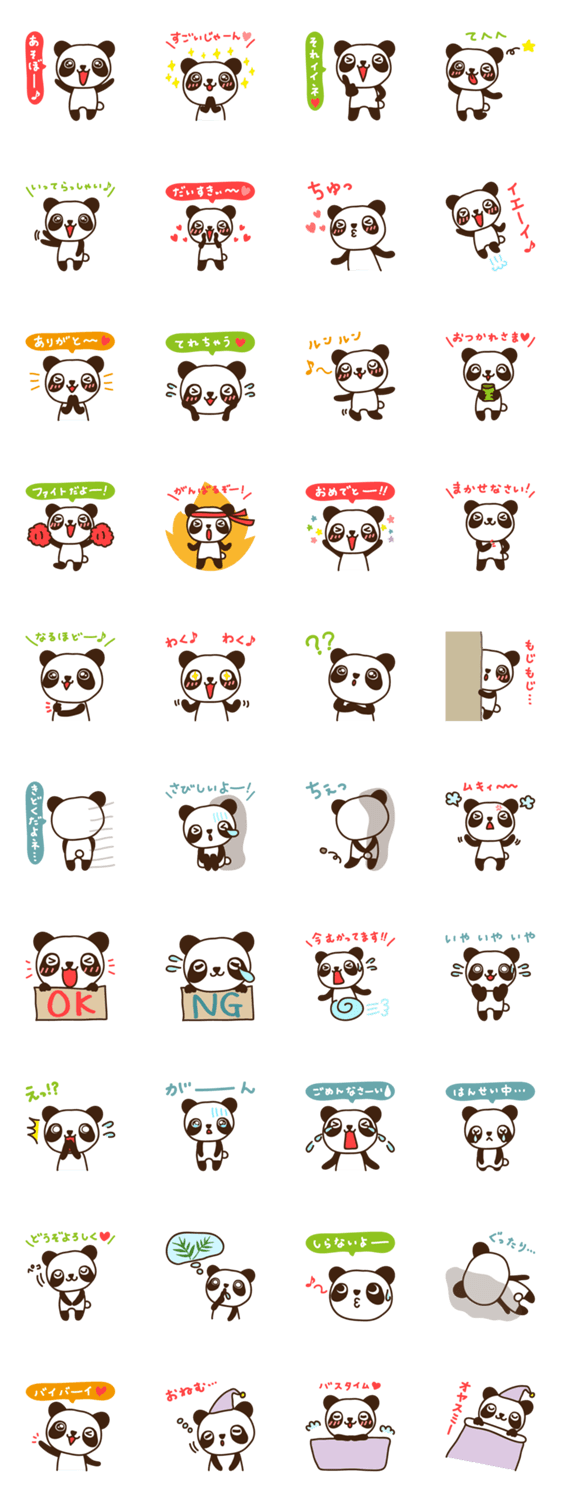 パンダのパンちゃん スタンプ倶楽部 コメントをどうぞ パンちゃんはちょっとぽってりしたお腹とカワイイ目がチャームポイントです。いっぱい食べて、いっぱい遊んで、いっぱい寝る育ちざかりの子パンダちゃんです。 このスタンプどう思う?!↓クリックで投票♪好き (0)かわいい (0)かっこいい (0)おもしろい (0)使いやすそう (0)欲しい (0)萌え (0)ほっこりする (0)おしゃれ (0)ゆるい (0)こわい (0)ウザい (0)キモい (0)ムカつく (0)持ってる (0)癒される (0)セクシー (0)個性的 (0)私は買わない (0)誰かプレゼントして! (0) 購入・プレゼントする Facebookでシェア Twitterでシェア