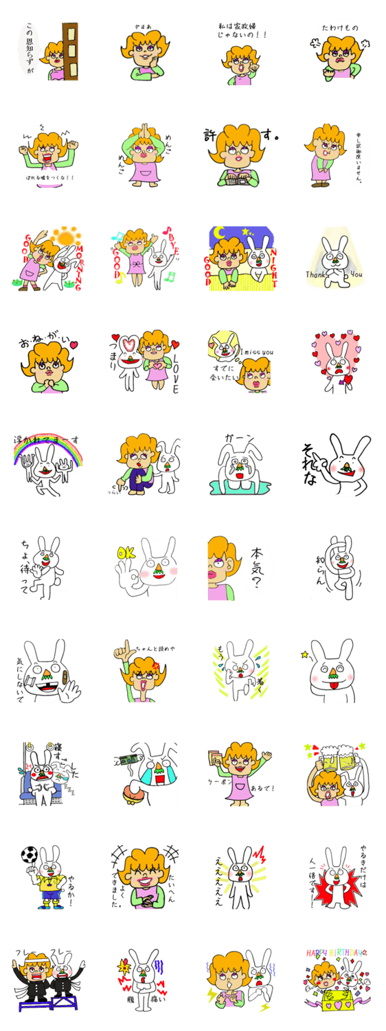 ヒステリみちことキャロットくん Manakko コメントをどうぞ ヒステリックな主婦みちことペットのうさぎキャロットくん。毒を吐くみちこと彼女を癒すキャロットくんの日常です。 このスタンプどう思う?!↓クリックで投票♪好き (0)かわいい (0)かっこいい (0)おもしろい (0)使いやすそう (0)欲しい (0)萌え (0)ほっこりする (0)おしゃれ (0)ゆるい (0)こわい (0)ウザい (0)キモい (0)ムカつく (0)持ってる (0)癒される (0)セクシー (0)個性的 (0)私は買わない (0)誰かプレゼントして! (0) 購入・プレゼントする Facebookでシェア Twitterでシェア