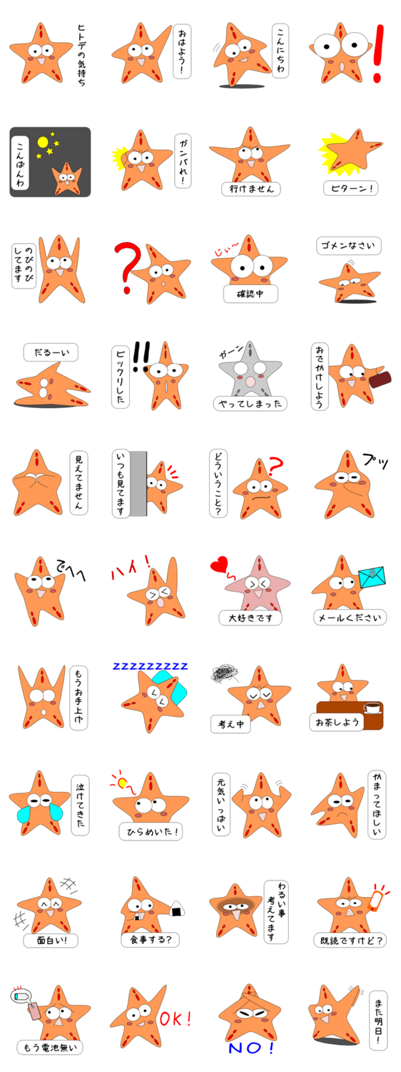 ヒトデの気持ち おなり コメントをどうぞ 日常会話ゆるスタンプ。会話初めや誘ったりする時などに使ってください。 このスタンプどう思う?!↓クリックで投票♪好き (0)かわいい (0)かっこいい (0)おもしろい (0)使いやすそう (0)欲しい (0)萌え (0)ほっこりする (0)おしゃれ (0)ゆるい (0)こわい (0)ウザい (0)キモい (0)ムカつく (0)持ってる (0)癒される (0)セクシー (0)個性的 (0)私は買わない (0)誰かプレゼントして! (0) 購入・プレゼントする Facebookでシェア Twitterでシェア