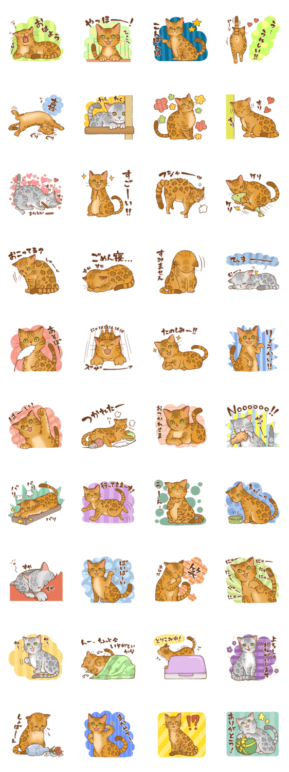 ヒョウ柄にゃんこ、ベンガルちゃん ぽこむー コメントをどうぞ ヒョウ柄模様がワイルドで可愛い、ベンガル猫ちゃんのスタンプ登場!日常会話で使いやすい、基本的なスタンプです。 このスタンプどう思う?!↓クリックで投票♪好き (0)かわいい (0)かっこいい (0)おもしろい (0)使いやすそう (0)欲しい (0)萌え (0)ほっこりする (0)おしゃれ (0)ゆるい (0)こわい (0)ウザい (0)キモい (0)ムカつく (0)持ってる (0)癒される (0)セクシー (0)個性的 (0)私は買わない (0)誰かプレゼントして! (0) 購入・プレゼントする Facebookでシェア Twitterでシェア