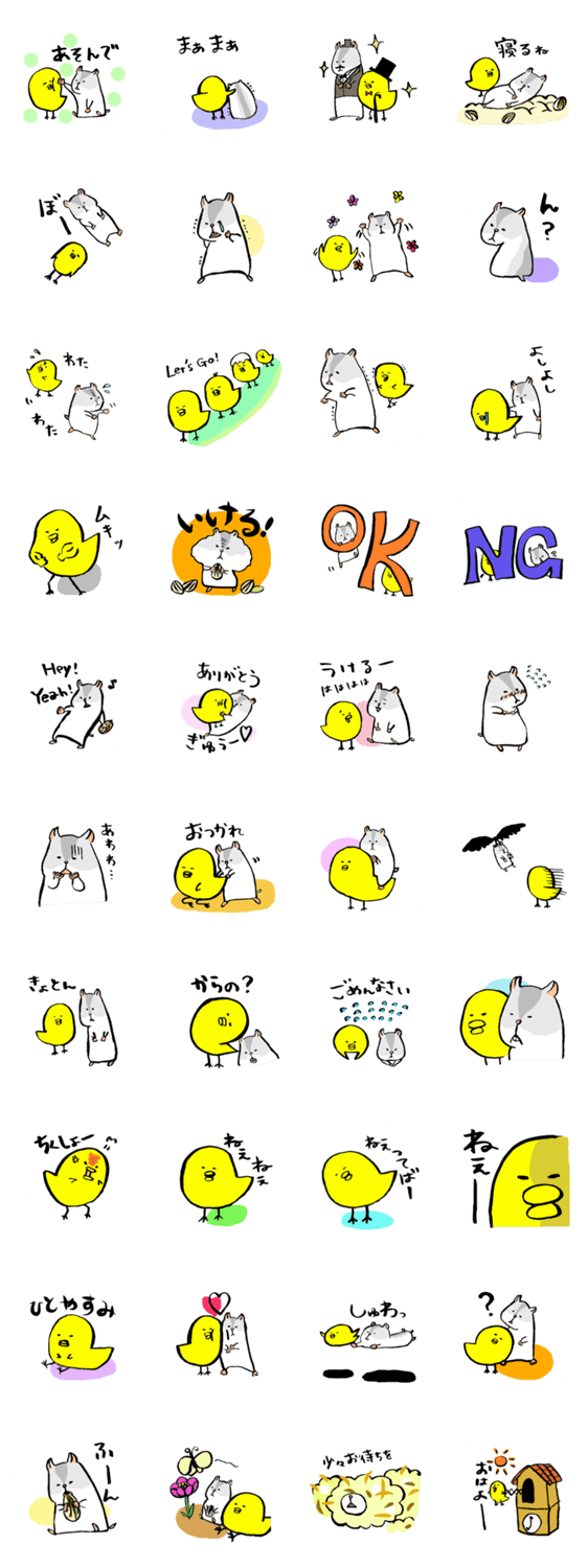 ヒヨコとハムスター くろちゃん コメントをどうぞ ヒヨコとハムスターのゆるいやりとり。 このスタンプどう思う?!↓クリックで投票♪好き (0)かわいい (0)かっこいい (0)おもしろい (0)使いやすそう (0)欲しい (0)萌え (0)ほっこりする (0)おしゃれ (0)ゆるい (0)こわい (0)ウザい (0)キモい (0)ムカつく (0)持ってる (0)癒される (0)セクシー (0)個性的 (0)私は買わない (0)誰かプレゼントして! (0) 購入・プレゼントする Facebookでシェア Twitterでシェア