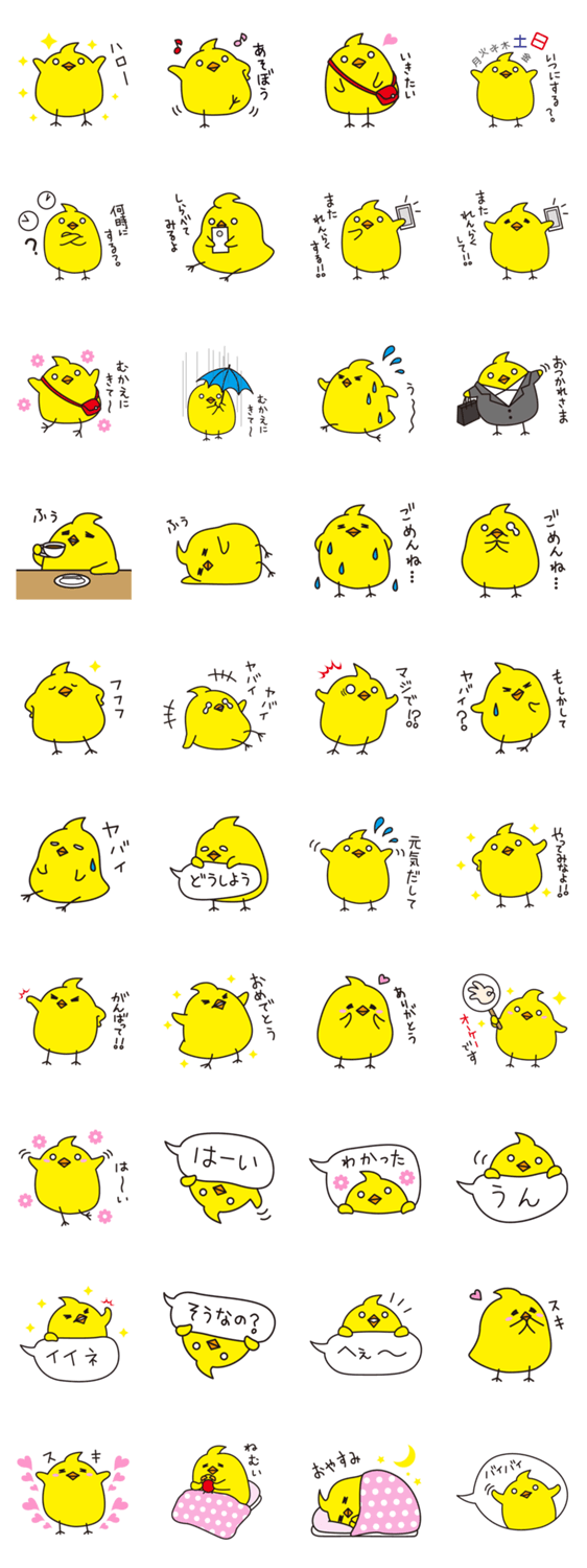 ヒヨコのピピ②。 PiPi コメントをどうぞ ピピです。言葉入りスタンプです。絵が大きく黄色が映えるスタンプです。 このスタンプどう思う?!↓クリックで投票♪好き (0)かわいい (0)かっこいい (0)おもしろい (0)使いやすそう (0)欲しい (0)萌え (0)ほっこりする (0)おしゃれ (0)ゆるい (0)こわい (0)ウザい (0)キモい (0)ムカつく (0)持ってる (0)癒される (0)セクシー (0)個性的 (0)私は買わない (0)誰かプレゼントして! (0) 購入・プレゼントする Facebookでシェア Twitterでシェア