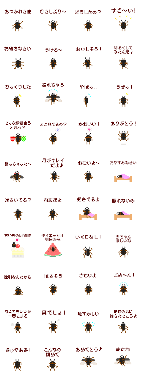 ピクワガタ メス mizuno bottom コメントをどうぞ ピクセルで描いたクワガタ「ピクワガタ」の雌です。 このスタンプどう思う?!↓クリックで投票♪好き (0)かわいい (0)かっこいい (0)おもしろい (0)使いやすそう (0)欲しい (0)萌え (0)ほっこりする (0)おしゃれ (0)ゆるい (0)こわい (0)ウザい (0)キモい (0)ムカつく (0)持ってる (0)癒される (0)セクシー (0)個性的 (0)私は買わない (0)誰かプレゼントして! (0) 購入・プレゼントする Facebookでシェア Twitterでシェア
