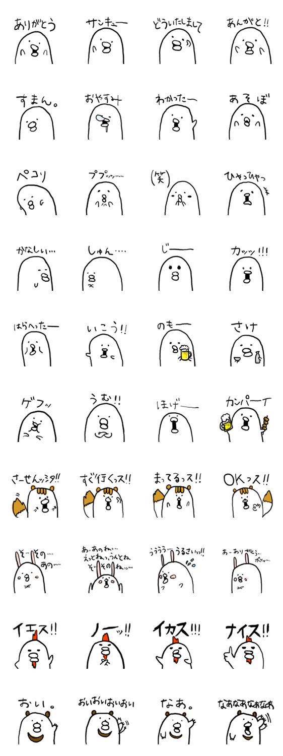 ピヨ藤さんとゆかいな仲間たち ACHIKO コメントをどうぞ あのピヨ藤さんがゆかいな仲間をひきつれてかえってきたよ!相変わらずゆる~くリアクションしたい人にお勧めです。 このスタンプどう思う?!↓クリックで投票♪好き (0)かわいい (0)かっこいい (0)おもしろい (0)使いやすそう (0)欲しい (0)萌え (0)ほっこりする (0)おしゃれ (0)ゆるい (0)こわい (0)ウザい (0)キモい (0)ムカつく (0)持ってる (0)癒される (0)セクシー (0)個性的 (0)私は買わない (0)誰かプレゼントして! (0) 購入・プレゼントする Facebookでシェア Twitterでシェア