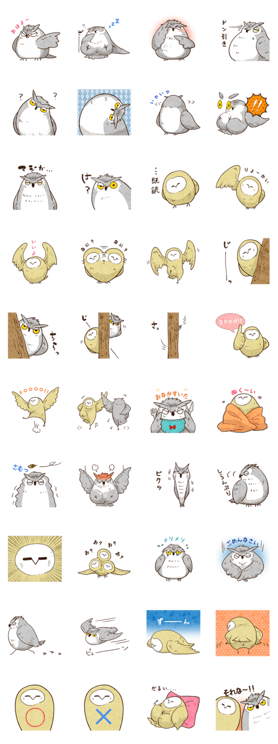 フクロウと一緒 株式会社プロファイア コメントをどうぞ ミミズクとメンフクロウの2匹の日常生活をスタンプ化 このスタンプどう思う?!↓クリックで投票♪好き (0)かわいい (0)かっこいい (0)おもしろい (0)使いやすそう (0)欲しい (0)萌え (0)ほっこりする (0)おしゃれ (0)ゆるい (0)こわい (0)ウザい (0)キモい (0)ムカつく (0)持ってる (0)癒される (0)セクシー (0)個性的 (0)私は買わない (0)誰かプレゼントして! (0) 購入・プレゼントする Facebookでシェア Twitterでシェア