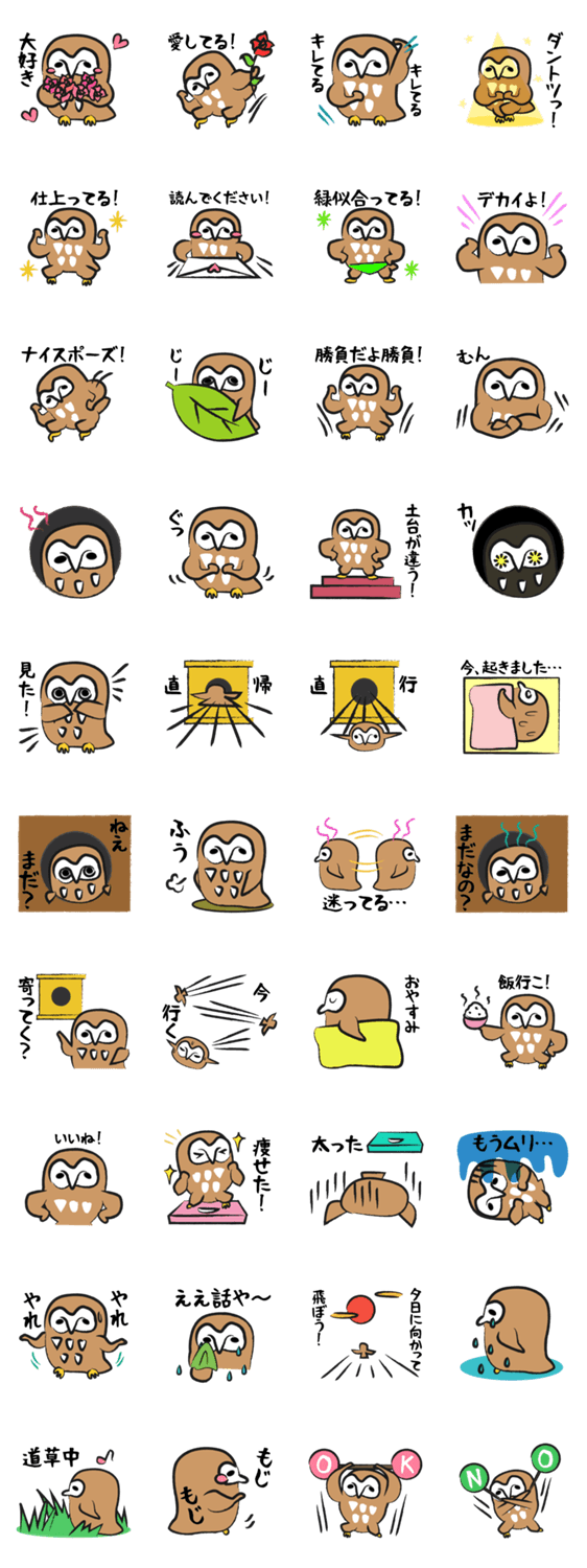 フクロウのボディビルダー ahiruyokocho コメントをどうぞ 梟がボディビルのポージング。ふくろうによる愛の言葉。返事待ち、「キレてる」等の掛け声、OKやNO、いいね、やれやれ、まだ?勝負など変なポーズを幸運な鳥がお届けします このスタンプどう思う?!↓クリックで投票♪好き (0)かわいい (0)かっこいい (0)おもしろい (0)使いやすそう (0)欲しい (0)萌え (0)ほっこりする (0)おしゃれ (0)ゆるい (0)こわい (0)ウザい (0)キモい (0)ムカつく (0)持ってる (0)癒される (0)セクシー (0)個性的 (0)私は買わない (0)誰かプレゼントして! (0) 購入・プレゼントする Facebookでシェア Twitterでシェア