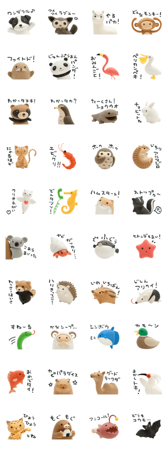 フジイカクホの粘土どうぶつ2 フジイカクホ コメントをどうぞ フジイカクホの粘土どうぶつのスタンプ第2弾です。どうぶつたちの様々な表情をお楽しみください。 このスタンプどう思う?!↓クリックで投票♪好き (0)かわいい (0)かっこいい (0)おもしろい (0)使いやすそう (0)欲しい (0)萌え (0)ほっこりする (0)おしゃれ (0)ゆるい (0)こわい (0)ウザい (0)キモい (0)ムカつく (0)持ってる (0)癒される (0)セクシー (0)個性的 (0)私は買わない (0)誰かプレゼントして! (0) 購入・プレゼントする Facebookでシェア Twitterでシェア