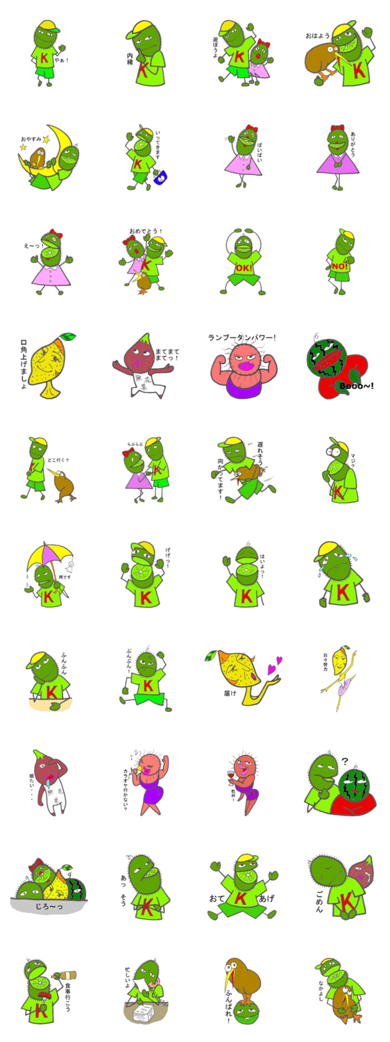 フルーツ村のキウイ少年 nyante コメントをどうぞ キウイ少年とキウイバードは大の仲良し。フルーツ村に住む他の友達も登場します。 このスタンプどう思う?!↓クリックで投票♪好き (0)かわいい (0)かっこいい (0)おもしろい (0)使いやすそう (0)欲しい (0)萌え (0)ほっこりする (0)おしゃれ (0)ゆるい (0)こわい (0)ウザい (0)キモい (0)ムカつく (0)持ってる (0)癒される (0)セクシー (0)個性的 (0)私は買わない (0)誰かプレゼントして! (0) 購入・プレゼントする Facebookでシェア Twitterでシェア