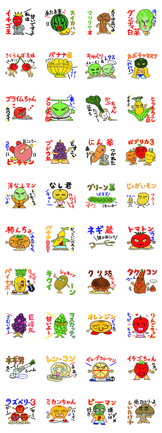 フルーツ48&ベジタブル46 ひろ コメントをどうぞ くだものと野菜をキャラクターにしてみました。かわいくてキュートとなキャラクター満載です。ぜひ、のぞいてみてください・・・きっとお気に入りが見つかりますよ! このスタンプどう思う?!↓クリックで投票♪好き (0)かわいい (0)かっこいい (0)おもしろい (0)使いやすそう (0)欲しい (0)萌え (0)ほっこりする (0)おしゃれ (0)ゆるい (0)こわい (0)ウザい (0)キモい (0)ムカつく (0)持ってる (0)癒される (0)セクシー (0)個性的 (0)私は買わない (0)誰かプレゼントして! (0) 購入・プレゼントする Facebookでシェア Twitterでシェア