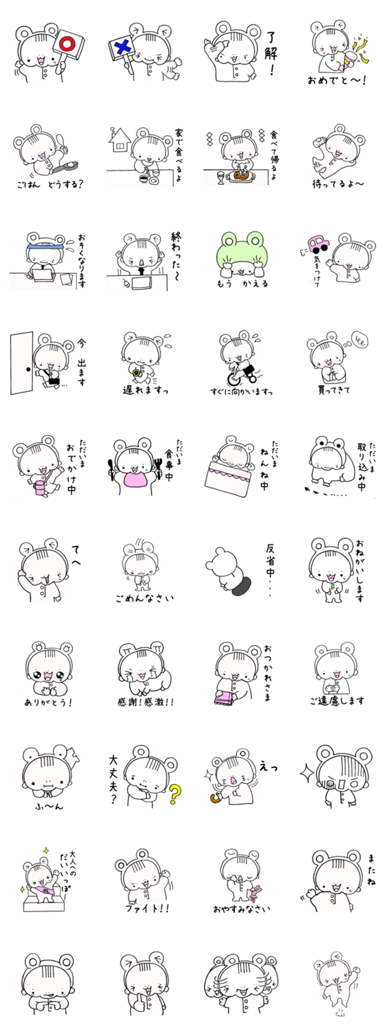フードくん 家族で使えるシンプルフレーズ chibineko コメントをどうぞ 家族への連絡はこれでばっちり!シンプルで使いやすいフレーズを集めました。友達や同僚にもどうぞ。カエルのフードをかぶった赤ちゃん、フードくんです。 このスタンプどう思う?!↓クリックで投票♪好き (0)かわいい (0)かっこいい (0)おもしろい (0)使いやすそう (0)欲しい (0)萌え (0)ほっこりする (0)おしゃれ (0)ゆるい (0)こわい (0)ウザい (0)キモい (0)ムカつく (0)持ってる (0)癒される (0)セクシー (0)個性的 (0)私は買わない (0)誰かプレゼントして! (0) 購入・プレゼントする Facebookでシェア Twitterでシェア