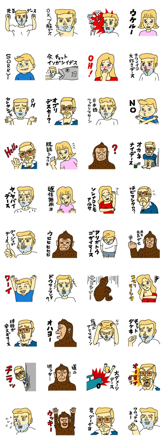 ブライアン家の人たち 風坊 コメントをどうぞ ブライアン家には楽しい家族がたくさん。夫ブライアン、妻ドロシー、息子エドモンド、娘アマンダ、ブライアンの兄ジェラルド、ペットの類人猿アレクサンダー。 このスタンプどう思う?!↓クリックで投票♪好き (0)かわいい (0)かっこいい (0)おもしろい (0)使いやすそう (0)欲しい (0)萌え (0)ほっこりする (0)おしゃれ (0)ゆるい (0)こわい (0)ウザい (0)キモい (0)ムカつく (0)持ってる (0)癒される (0)セクシー (0)個性的 (0)私は買わない (0)誰かプレゼントして! (0) 購入・プレゼントする Facebookでシェア Twitterでシェア