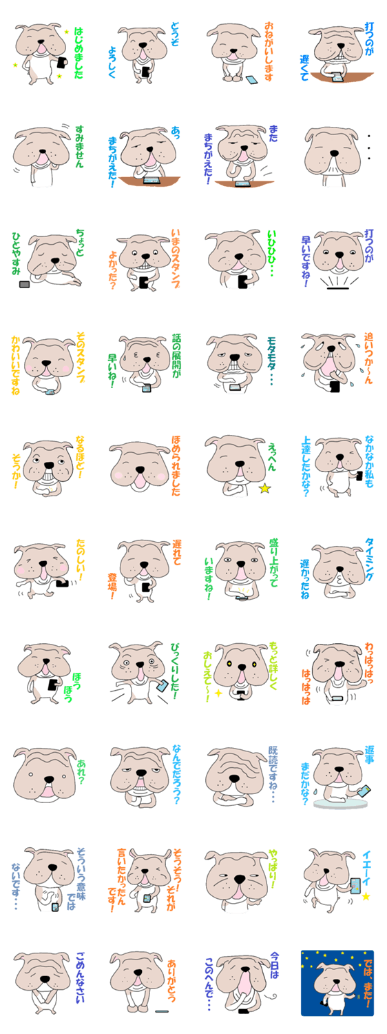 ブルドッくん だもの ゆめかぼちゃ コメントをどうぞ LINEを始めたばかりのブルドッグです。初心者ですので、まだまだ未熟な犬ですが、どうぞよろしくお願いします。入力を間違えた時や早く対応したい時にオススメです。 このスタンプどう思う?!↓クリックで投票♪好き (0)かわいい (0)かっこいい (0)おもしろい (0)使いやすそう (0)欲しい (0)萌え (0)ほっこりする (0)おしゃれ (0)ゆるい (0)こわい (0)ウザい (0)キモい (0)ムカつく (0)持ってる (0)癒される (0)セクシー (0)個性的 (0)私は買わない (0)誰かプレゼントして! (0) 購入・プレゼントする Facebookでシェア Twitterでシェア