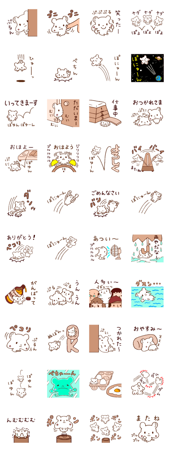 プニプニぷにっクマ☆ hiropi コメントをどうぞ 体がぷにぷにのぷにっクマです☆ プニプニぷるぷるしてるので、いろんなシーンでぽにゅーんと飛び跳ねてしまいます☆ 日常会話付きで毎日使えるプニプニのスタンプです♪ このスタンプどう思う?!↓クリックで投票♪好き (0)かわいい (0)かっこいい (0)おもしろい (0)使いやすそう (0)欲しい (0)萌え (0)ほっこりする (0)おしゃれ (0)ゆるい (0)こわい (0)ウザい (0)キモい (0)ムカつく (0)持ってる (0)癒される (0)セクシー (0)個性的 (0)私は買わない (0)誰かプレゼントして! (0) 購入・プレゼントする Facebookでシェア Twitterでシェア