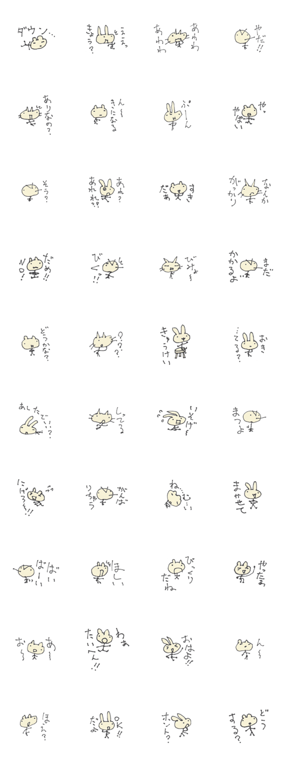ヘタ過ぎるにも程がある“コへにゃちょこ” ケンヤ・カセ コメントをどうぞ 脱力感満載のゆる過ぎる落書き“コへにゃちょこ”です。コくま・コうさぎ・コとり・コねこ。身体は線のみのゆるさで字もヘタ。何とも残念な感じが破壊力超絶です。 このスタンプどう思う?!↓クリックで投票♪好き (0)かわいい (0)かっこいい (0)おもしろい (0)使いやすそう (0)欲しい (0)萌え (0)ほっこりする (0)おしゃれ (0)ゆるい (0)こわい (0)ウザい (0)キモい (0)ムカつく (0)持ってる (0)癒される (0)セクシー (0)個性的 (0)私は買わない (0)誰かプレゼントして! (0) 購入・プレゼントする Facebookでシェア Twitterでシェア