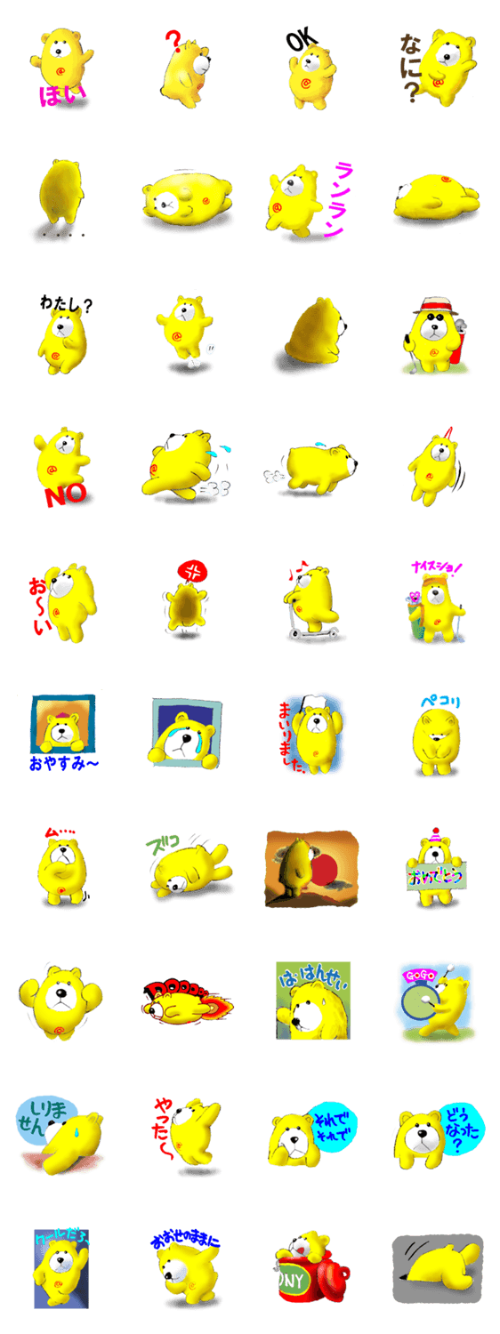 ベアットはとても元気な黄色の縫い包み mark takao コメントをどうぞ ベアットの言いたい放題ぜひ聞いてあげてね。 このスタンプどう思う?!↓クリックで投票♪好き (0)かわいい (0)かっこいい (0)おもしろい (0)使いやすそう (0)欲しい (0)萌え (0)ほっこりする (0)おしゃれ (0)ゆるい (0)こわい (0)ウザい (0)キモい (0)ムカつく (0)持ってる (0)癒される (0)セクシー (0)個性的 (0)私は買わない (0)誰かプレゼントして! (0) 購入・プレゼントする Facebookでシェア Twitterでシェア