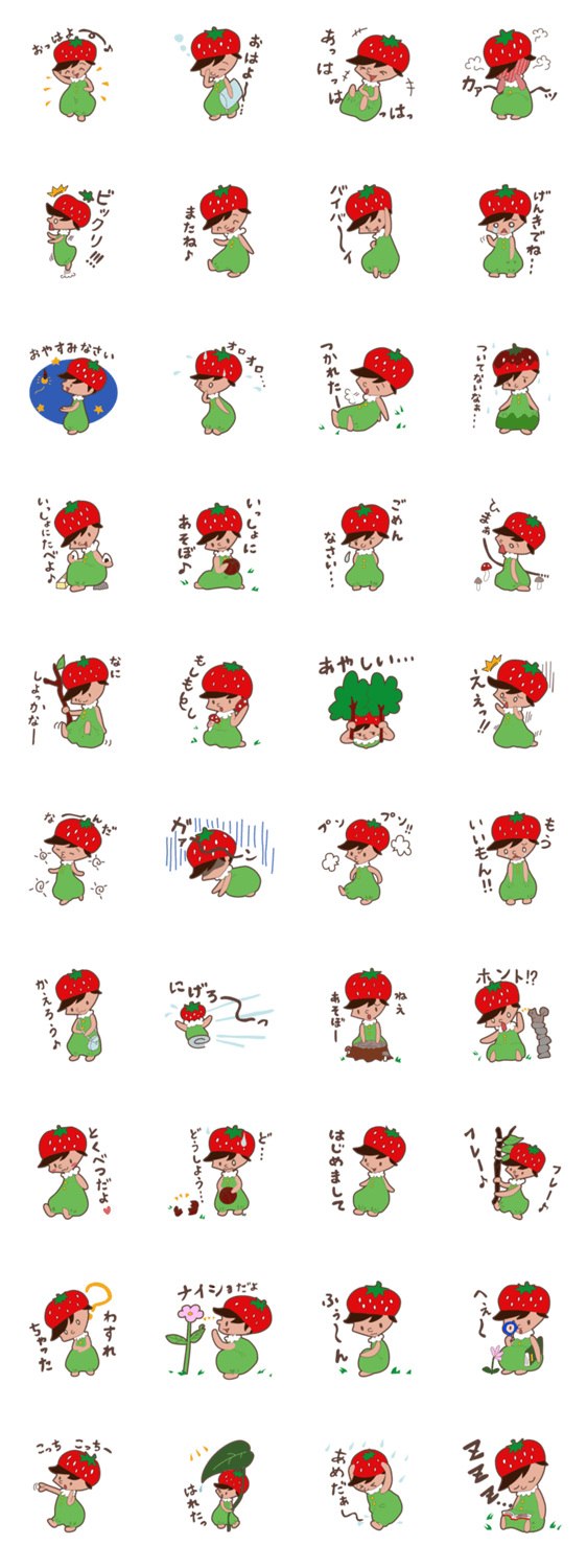 ベリーぼうや 2ems コメントをどうぞ いちごの国の「ベリーぼうや」。キノコの電話や葉っぱの傘がある不思議な国に暮らすベリーぼうやの日常をそっとのぞいてみませんか? このスタンプどう思う?!↓クリックで投票♪好き (0)かわいい (0)かっこいい (0)おもしろい (0)使いやすそう (0)欲しい (0)萌え (0)ほっこりする (0)おしゃれ (0)ゆるい (0)こわい (0)ウザい (0)キモい (0)ムカつく (0)持ってる (0)癒される (0)セクシー (0)個性的 (0)私は買わない (0)誰かプレゼントして! (0) 購入・プレゼントする Facebookでシェア Twitterでシェア
