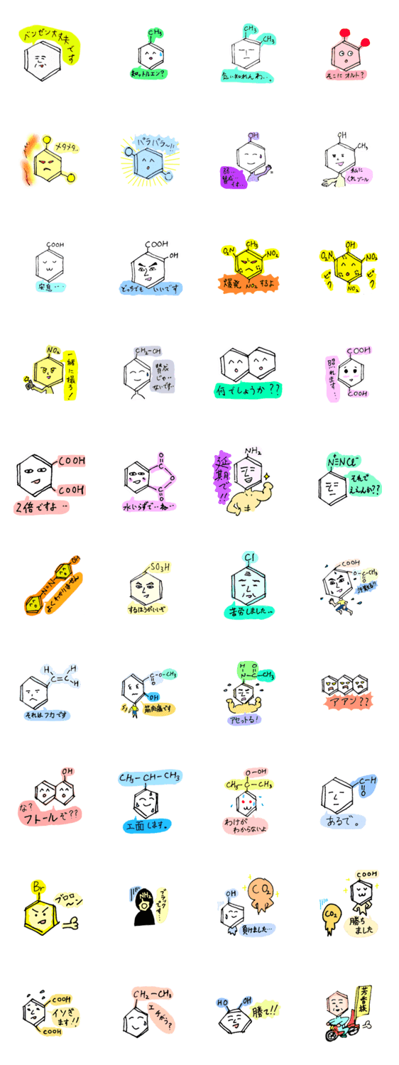 ベンゼン大丈夫じゃない芳香族スタンプ ume コメントをどうぞ ベンゼンって知ってる?ラインを使ってダジャレなどで楽しく高校範囲の芳香族化合物を勉強しちゃおう。 このスタンプどう思う?!↓クリックで投票♪好き (0)かわいい (0)かっこいい (0)おもしろい (0)使いやすそう (0)欲しい (0)萌え (0)ほっこりする (0)おしゃれ (0)ゆるい (0)こわい (0)ウザい (0)キモい (0)ムカつく (0)持ってる (0)癒される (0)セクシー (0)個性的 (0)私は買わない (0)誰かプレゼントして! (0) 購入・プレゼントする Facebookでシェア Twitterでシェア