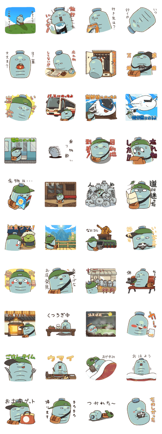 ペットボトル君 旅行記 植木マロン コメントをどうぞ ペットボトル君、第二弾!なんと今回は旅行に行くそうです。旅行先での出来事を、ペットボトル君と一緒に家族や友人に報告しちゃおう! このスタンプどう思う?!↓クリックで投票♪好き (0)かわいい (0)かっこいい (0)おもしろい (0)使いやすそう (0)欲しい (0)萌え (0)ほっこりする (0)おしゃれ (0)ゆるい (0)こわい (0)ウザい (0)キモい (0)ムカつく (0)持ってる (0)癒される (0)セクシー (0)個性的 (0)私は買わない (0)誰かプレゼントして! (0) 購入・プレゼントする Facebookでシェア Twitterでシェア