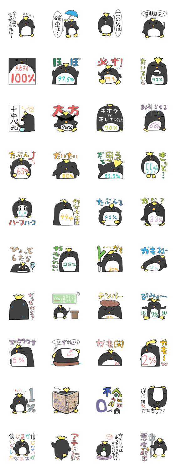 ペンギンさんの曖昧な%のつけたし tarakyo コメントをどうぞ ペンギンさんが、ありとあらゆるあなたの会話に%をつけくわえます。信じるか信じないかは、あなたと相手次第です。 このスタンプどう思う?!↓クリックで投票♪好き (0)かわいい (0)かっこいい (0)おもしろい (0)使いやすそう (0)欲しい (0)萌え (0)ほっこりする (0)おしゃれ (0)ゆるい (0)こわい (0)ウザい (0)キモい (0)ムカつく (0)持ってる (0)癒される (0)セクシー (0)個性的 (0)私は買わない (0)誰かプレゼントして! (0) 購入・プレゼントする Facebookでシェア Twitterでシェア