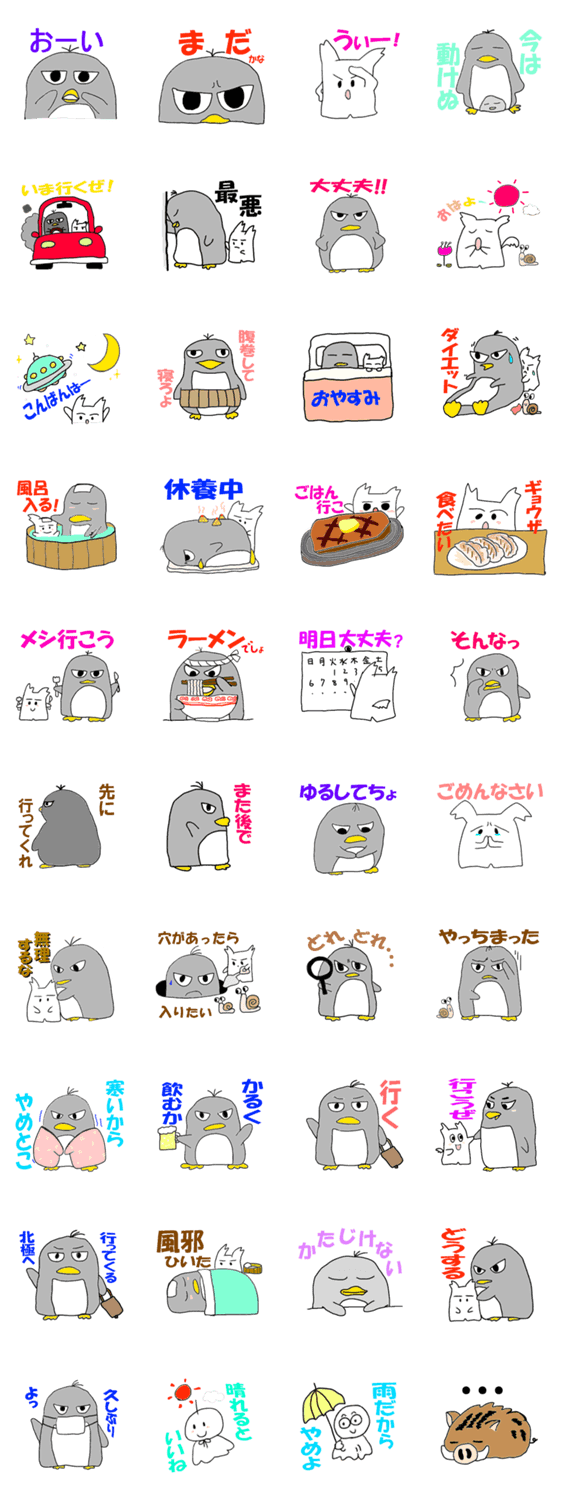 ペン銀造ともうします umeko コメントをどうぞ 見た目は怖いけど気が弱くて優しい太ったペンギンです。犬の友達チビ助とちっちゃい仲間もちょいちょい登場。ペン銀造と申します。 このスタンプどう思う?!↓クリックで投票♪好き (0)かわいい (0)かっこいい (0)おもしろい (0)使いやすそう (0)欲しい (0)萌え (0)ほっこりする (0)おしゃれ (0)ゆるい (0)こわい (0)ウザい (0)キモい (0)ムカつく (0)持ってる (0)癒される (0)セクシー (0)個性的 (0)私は買わない (0)誰かプレゼントして! (0) 購入・プレゼントする Facebookでシェア Twitterでシェア