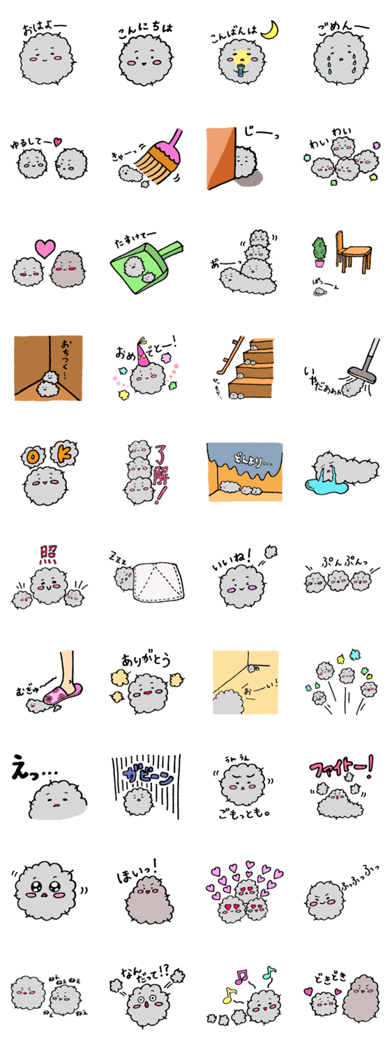 ホコリちゃん つんつん コメントをどうぞ 汚いと思われているホコリ達。でもよく見ると愛嬌があってかわいいんです。好きなものは「部屋の隅っこ」、嫌いなものは「掃除」です。 このスタンプどう思う?!↓クリックで投票♪好き (0)かわいい (0)かっこいい (0)おもしろい (0)使いやすそう (0)欲しい (0)萌え (0)ほっこりする (0)おしゃれ (0)ゆるい (0)こわい (0)ウザい (0)キモい (0)ムカつく (0)持ってる (0)癒される (0)セクシー (0)個性的 (0)私は買わない (0)誰かプレゼントして! (0) 購入・プレゼントする Facebookでシェア Twitterでシェア