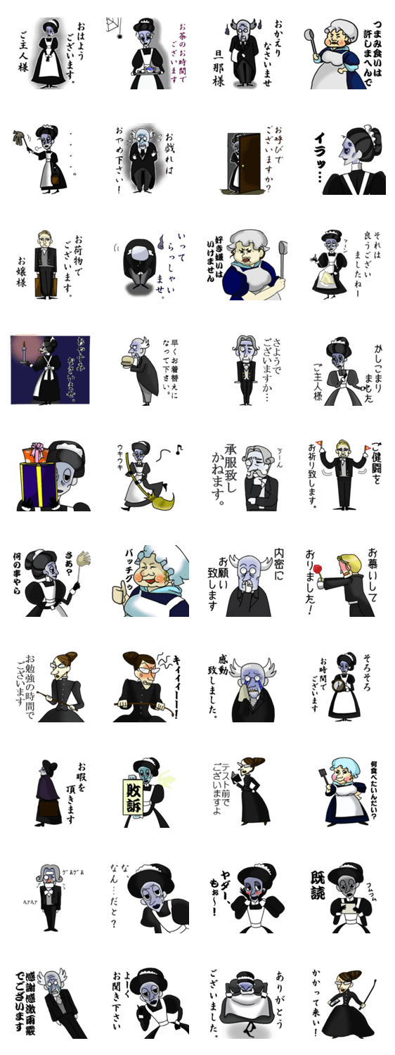 ホラーマナーハウスの使用人達 kimikimi コメントをどうぞ ダークな雰囲気な仕様人たちが出迎えてくれます。 このスタンプどう思う?!↓クリックで投票♪好き (0)かわいい (0)かっこいい (0)おもしろい (0)使いやすそう (0)欲しい (0)萌え (0)ほっこりする (0)おしゃれ (0)ゆるい (0)こわい (0)ウザい (0)キモい (0)ムカつく (0)持ってる (0)癒される (0)セクシー (0)個性的 (0)私は買わない (0)誰かプレゼントして! (0) 購入・プレゼントする Facebookでシェア Twitterでシェア