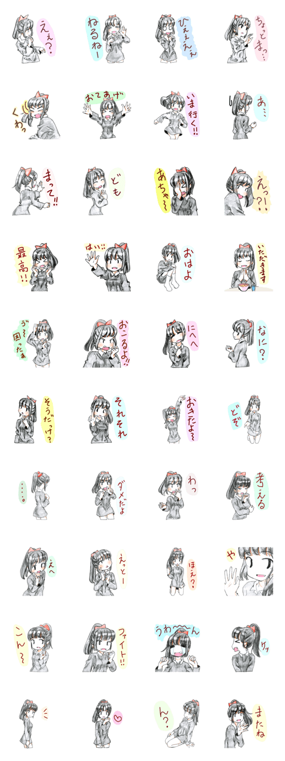 ポニーテールの女の子 第2弾 ううz コメントをどうぞ かわいいポニーテールの、女の子のスタンプ、第2弾です。 このスタンプどう思う?!↓クリックで投票♪好き (0)かわいい (0)かっこいい (0)おもしろい (0)使いやすそう (0)欲しい (0)萌え (0)ほっこりする (0)おしゃれ (0)ゆるい (0)こわい (0)ウザい (0)キモい (0)ムカつく (0)持ってる (0)癒される (0)セクシー (0)個性的 (0)私は買わない (0)誰かプレゼントして! (0) 購入・プレゼントする Facebookでシェア Twitterでシェア