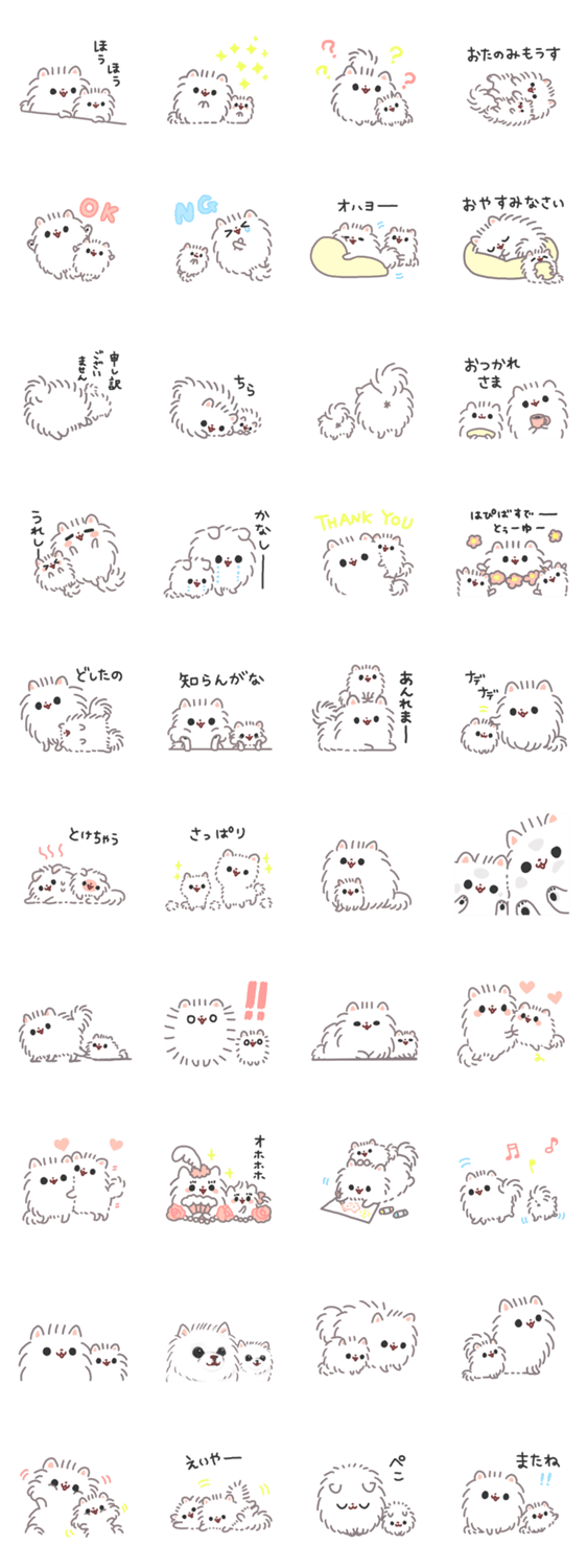 ポメラニアン もち 5 -ちびもちと一緒編- mal コメントをどうぞ お餅みたいなポメラニアン"もち"と"ちびもち″の仲良しスタンプ。シリーズ第5弾です。 このスタンプどう思う?!↓クリックで投票♪好き (0)かわいい (0)かっこいい (0)おもしろい (0)使いやすそう (0)欲しい (0)萌え (0)ほっこりする (0)おしゃれ (0)ゆるい (0)こわい (0)ウザい (0)キモい (0)ムカつく (0)持ってる (0)癒される (0)セクシー (0)個性的 (0)私は買わない (0)誰かプレゼントして! (0) 購入・プレゼントする Facebookでシェア Twitterでシェア