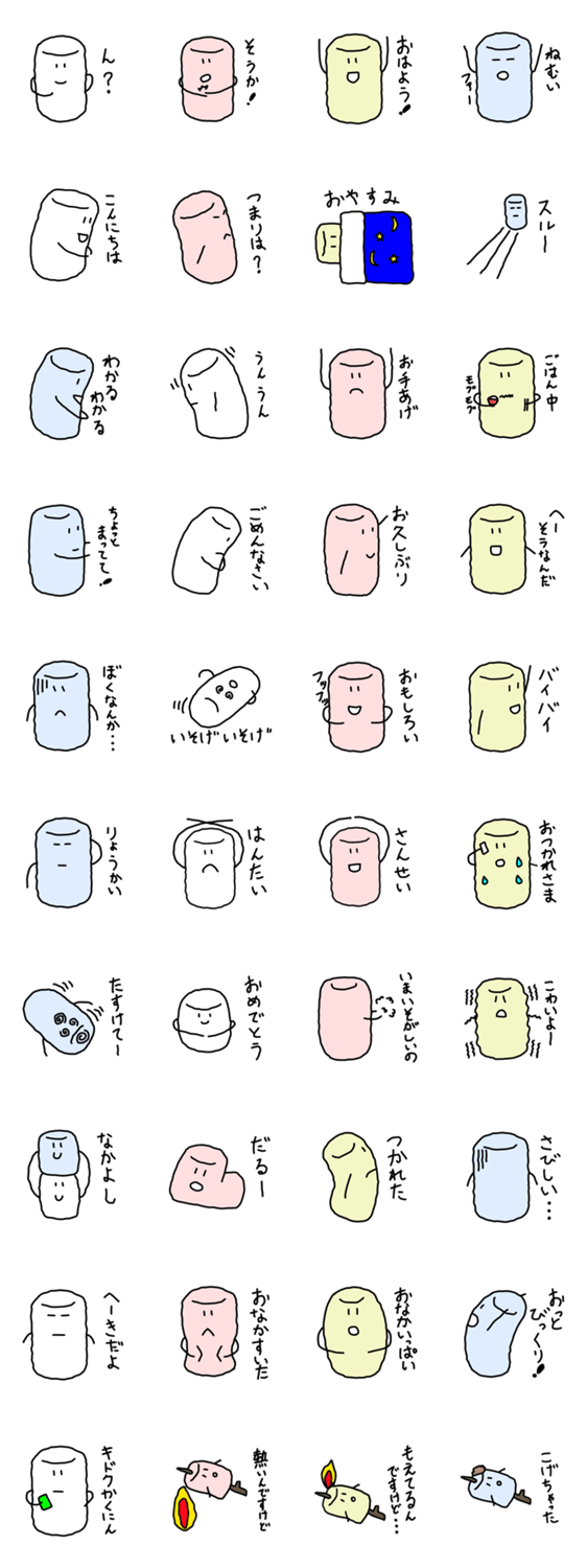 マシュマロくん Shimada,Ay コメントをどうぞ みんなお馴染みのふわふわでとろける甘さのお菓子、またキャンプでの焚き火のお供でもあるマシュマロをキャラクターにしました。おおいにお使いください。 このスタンプどう思う?!↓クリックで投票♪好き (0)かわいい (0)かっこいい (0)おもしろい (0)使いやすそう (0)欲しい (0)萌え (0)ほっこりする (0)おしゃれ (0)ゆるい (0)こわい (0)ウザい (0)キモい (0)ムカつく (0)持ってる (0)癒される (0)セクシー (0)個性的 (0)私は買わない (0)誰かプレゼントして! (0) 購入・プレゼントする Facebookでシェア Twitterでシェア