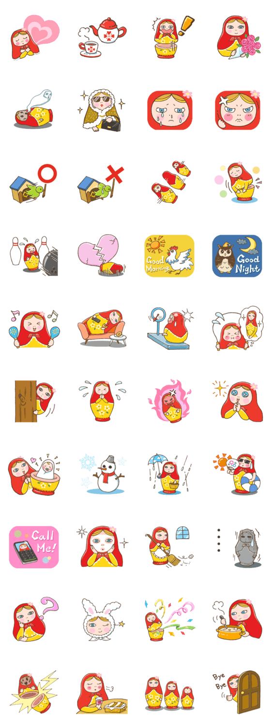 マトリョーシカ・ニーナちゃん SUI コメントをどうぞ マトリョーシカの女の子、ニーナちゃん。挨拶の他にダイエット、料理、掃除・・など、表情豊かなニーナちゃんの日常を、あなたのLINEトークにぜひ登場させてくださいね。 このスタンプどう思う?!↓クリックで投票♪好き (0)かわいい (0)かっこいい (0)おもしろい (0)使いやすそう (0)欲しい (0)萌え (0)ほっこりする (0)おしゃれ (0)ゆるい (0)こわい (0)ウザい (0)キモい (0)ムカつく (0)持ってる (0)癒される (0)セクシー (0)個性的 (0)私は買わない (0)誰かプレゼントして! (0) 購入・プレゼントする Facebookでシェア Twitterでシェア