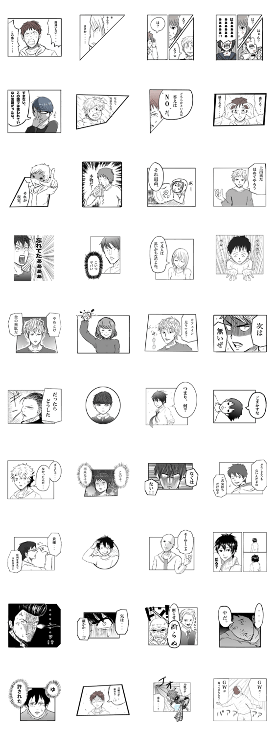 マンガっぽいスタンプ Ko-hey コメントをどうぞ 漫画のコマを一部切り取ったかのようなスタンプです厨二要素も盛りだくさんとなってます。迫り来る月曜日もGWゴールデンウイークもこいつがあれば楽しく乗り切れる!はず! このスタンプどう思う?!↓クリックで投票♪好き (0)かわいい (0)かっこいい (0)おもしろい (0)使いやすそう (0)欲しい (0)萌え (0)ほっこりする (0)おしゃれ (0)ゆるい (0)こわい (0)ウザい (0)キモい (0)ムカつく (0)持ってる (0)癒される (0)セクシー (0)個性的 (0)私は買わない (0)誰かプレゼントして! (0) 購入・プレゼントする Facebookでシェア Twitterでシェア