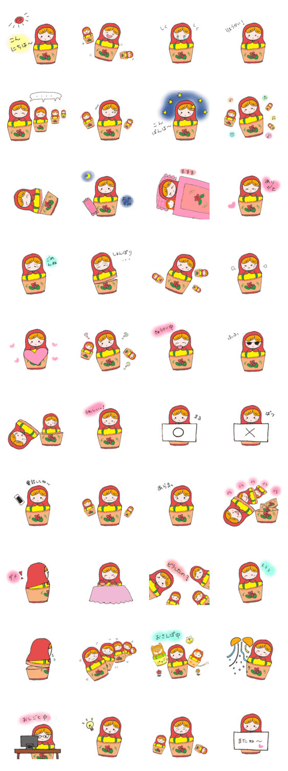 ミキオレンジのマトリョーシカ Miki Orange コメントをどうぞ ミキオレンジのマトリョーシカのスタンプです。 このスタンプどう思う?!↓クリックで投票♪好き (0)かわいい (0)かっこいい (0)おもしろい (0)使いやすそう (0)欲しい (0)萌え (0)ほっこりする (0)おしゃれ (0)ゆるい (0)こわい (0)ウザい (0)キモい (0)ムカつく (0)持ってる (0)癒される (0)セクシー (0)個性的 (0)私は買わない (0)誰かプレゼントして! (0) 購入・プレゼントする Facebookでシェア Twitterでシェア