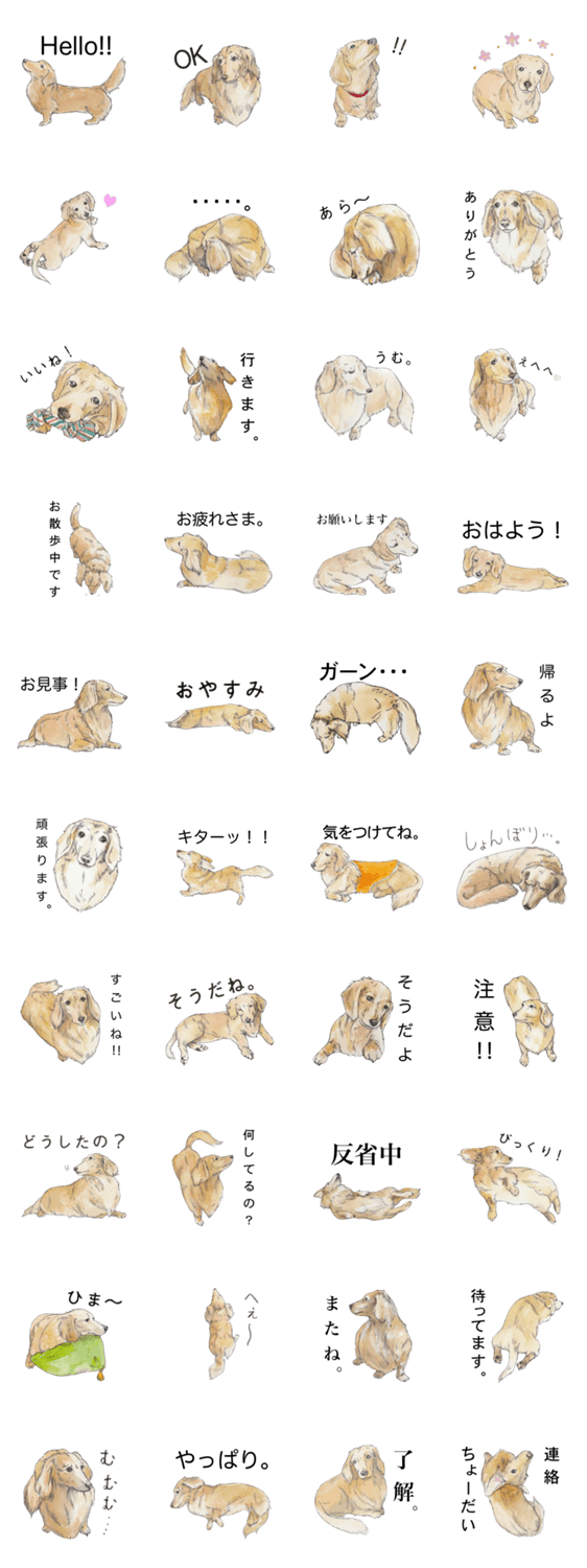 ミニチュアダックスフンドのリク blue love bird コメントをどうぞ 水彩画で描かれたミニチュアダックスフンドのスタンプです。 このスタンプどう思う?!↓クリックで投票♪好き (0)かわいい (0)かっこいい (0)おもしろい (0)使いやすそう (0)欲しい (0)萌え (0)ほっこりする (0)おしゃれ (0)ゆるい (0)こわい (0)ウザい (0)キモい (0)ムカつく (0)持ってる (0)癒される (0)セクシー (0)個性的 (0)私は買わない (0)誰かプレゼントして! (0) 購入・プレゼントする Facebookでシェア Twitterでシェア