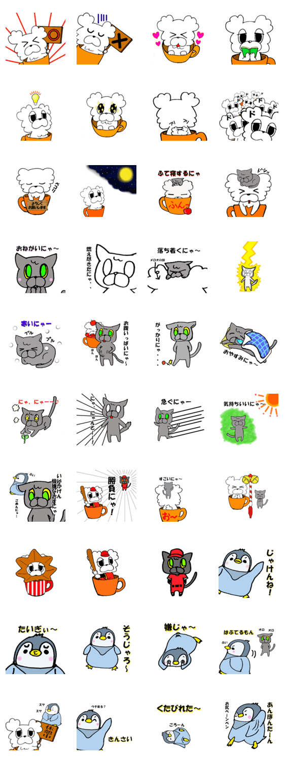 メロオとネーロ☆第2弾☆広島バージョン kent コメントをどうぞ メロオとネーロのほのぼのスタンプの第2弾です☆今度は広島が舞台。広島で出会った広島弁のペンギン「ぶちペン君」も登場します! このスタンプどう思う?!↓クリックで投票♪好き (0)かわいい (0)かっこいい (0)おもしろい (0)使いやすそう (0)欲しい (0)萌え (0)ほっこりする (0)おしゃれ (0)ゆるい (0)こわい (0)ウザい (0)キモい (0)ムカつく (0)持ってる (0)癒される (0)セクシー (0)個性的 (0)私は買わない (0)誰かプレゼントして! (0) 購入・プレゼントする Facebookでシェア Twitterでシェア