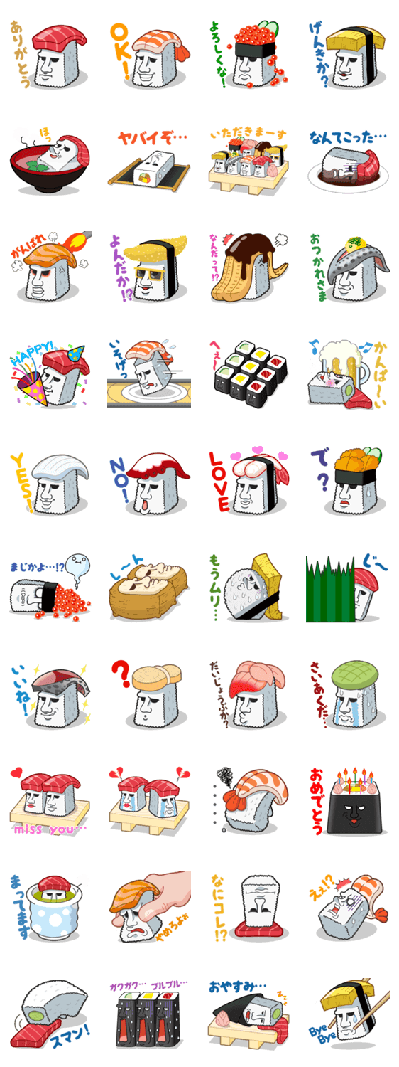 モアイ寿司 nekonikuclub コメントをどうぞ モアイの形をしたお寿司「モアイ寿司」。 モアトロ、モアいくら、モアたまご、など・・・。この店の寿司はちょっと無表情だけど個性豊かで新鮮なネタが揃っています。 このスタンプどう思う?!↓クリックで投票♪好き (0)かわいい (0)かっこいい (0)おもしろい (0)使いやすそう (0)欲しい (0)萌え (0)ほっこりする (0)おしゃれ (0)ゆるい (0)こわい (0)ウザい (0)キモい (0)ムカつく (0)持ってる (0)癒される (0)セクシー (0)個性的 (0)私は買わない (0)誰かプレゼントして! (0) 購入・プレゼントする Facebookでシェア Twitterでシェア