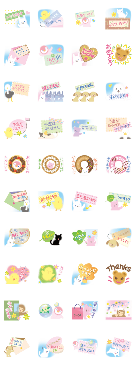 モフっとアニマル 2 ふらここ コメントをどうぞ ふわふわの動物たちに子猫と子猿が加わりました。メッセージツールにはドーナッツとクッキーが増えてさらにパワーアップです。 このスタンプどう思う?!↓クリックで投票♪好き (0)かわいい (0)かっこいい (0)おもしろい (0)使いやすそう (0)欲しい (0)萌え (0)ほっこりする (0)おしゃれ (0)ゆるい (0)こわい (0)ウザい (0)キモい (0)ムカつく (0)持ってる (0)癒される (0)セクシー (0)個性的 (0)私は買わない (0)誰かプレゼントして! (0) 購入・プレゼントする Facebookでシェア Twitterでシェア