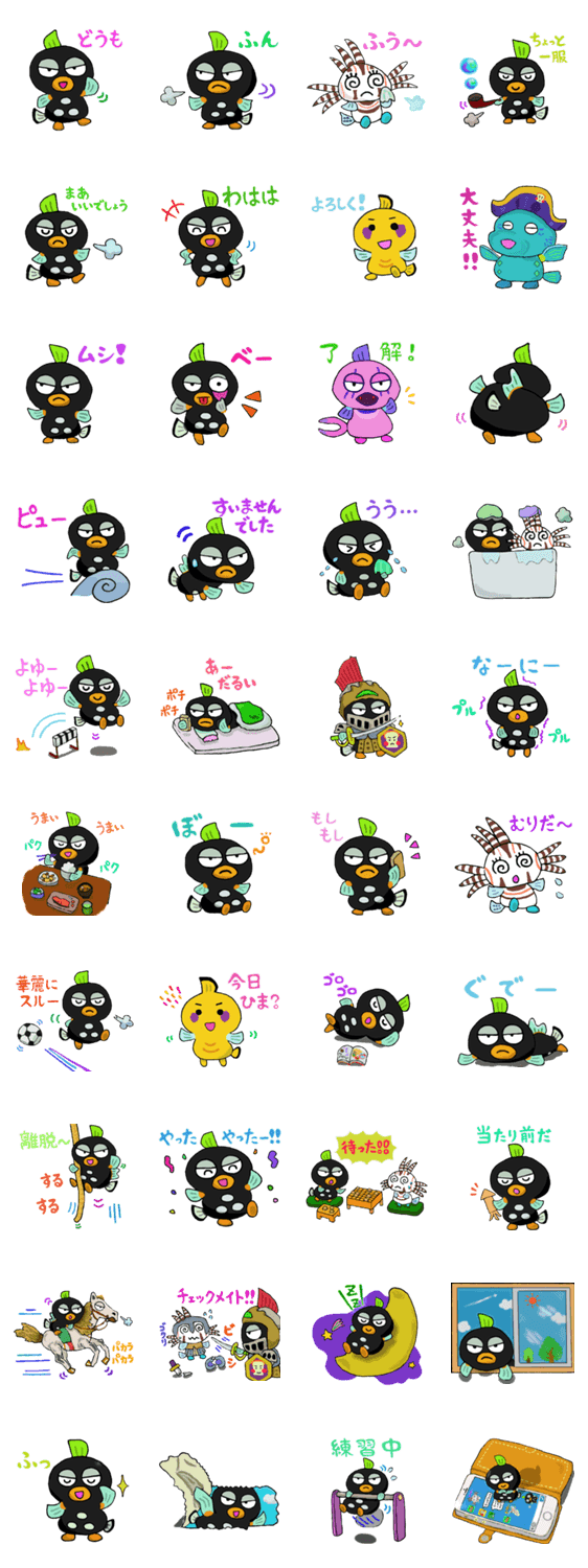 モンガラくん たぼ吉 コメントをどうぞ モンガラカワハギのモンガラくんが初登場!!ちょっと不機嫌そうに見えて、実はお茶目でかわいいモンガラくん。ゴロ寝から乗馬まで、自由奔放なモンガラくんと盛り上がろう! このスタンプどう思う?!↓クリックで投票♪好き (0)かわいい (0)かっこいい (0)おもしろい (0)使いやすそう (0)欲しい (0)萌え (0)ほっこりする (0)おしゃれ (0)ゆるい (0)こわい (0)ウザい (0)キモい (0)ムカつく (0)持ってる (0)癒される (0)セクシー (0)個性的 (0)私は買わない (0)誰かプレゼントして! (0) 購入・プレゼントする Facebookでシェア Twitterでシェア