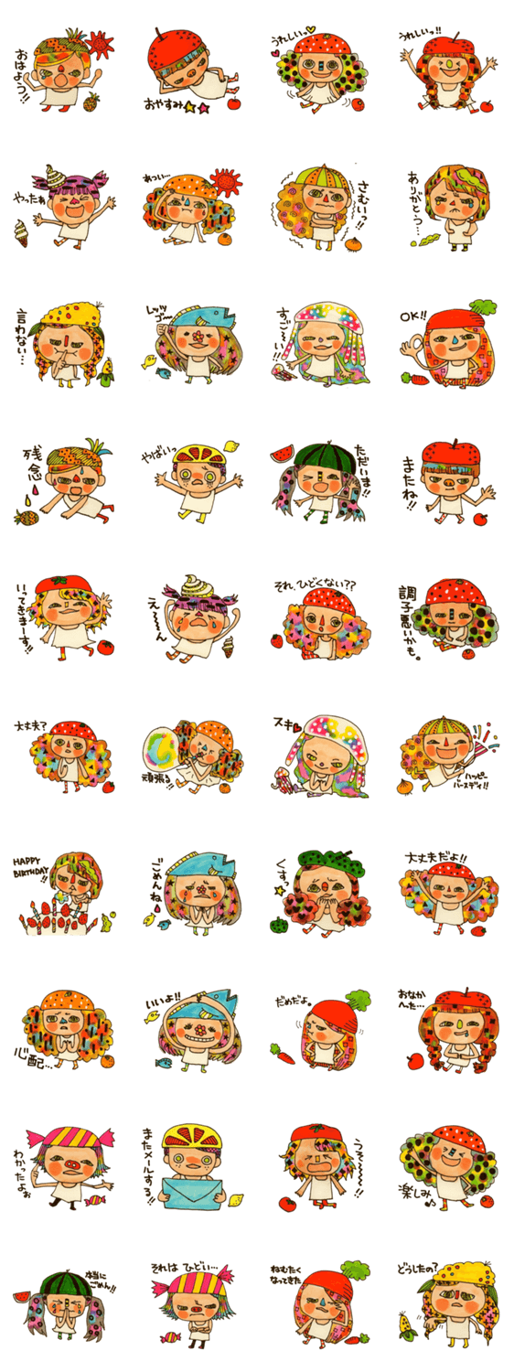 ヤミーキッズ! maro コメントをどうぞ 果物やお野菜、サカナ、お菓子、いろんな食べ物格好のカラフルなキッズ達!!足下に転がっている食べ物と見くらべて、何の食べ物か当ててみて! このスタンプどう思う?!↓クリックで投票♪好き (0)かわいい (0)かっこいい (0)おもしろい (0)使いやすそう (0)欲しい (0)萌え (0)ほっこりする (0)おしゃれ (0)ゆるい (0)こわい (0)ウザい (0)キモい (0)ムカつく (0)持ってる (0)癒される (0)セクシー (0)個性的 (0)私は買わない (0)誰かプレゼントして! (0) 購入・プレゼントする Facebookでシェア Twitterでシェア
