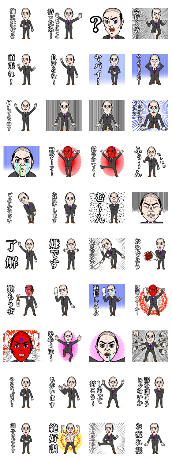 ヤングエグゼグティブ☆吉田部長 hiroyuki ishida コメントをどうぞ 超人気アーティスト☆ヒロ石田が、ヤングエグゼグティブ☆吉田部長の日常を愉快に描きます。みんなも好きなだけスタンプして下さい。 このスタンプどう思う?!↓クリックで投票♪好き (0)かわいい (0)かっこいい (0)おもしろい (0)使いやすそう (0)欲しい (0)萌え (0)ほっこりする (0)おしゃれ (0)ゆるい (0)こわい (0)ウザい (0)キモい (0)ムカつく (0)持ってる (0)癒される (0)セクシー (0)個性的 (0)私は買わない (0)誰かプレゼントして! (0) 購入・プレゼントする Facebookでシェア Twitterでシェア