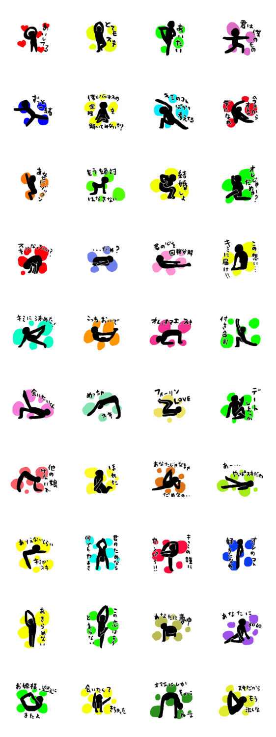 ヨガで愛を伝えよう aporo コメントをどうぞ 色々なヨガのポーズで声に出すと恥ずかしい気持ちを面白く伝えよう。パートナーや家族、友達へ。 このスタンプどう思う?!↓クリックで投票♪好き (0)かわいい (0)かっこいい (0)おもしろい (0)使いやすそう (0)欲しい (0)萌え (0)ほっこりする (0)おしゃれ (0)ゆるい (0)こわい (0)ウザい (0)キモい (0)ムカつく (0)持ってる (0)癒される (0)セクシー (0)個性的 (0)私は買わない (0)誰かプレゼントして! (0) 購入・プレゼントする Facebookでシェア Twitterでシェア