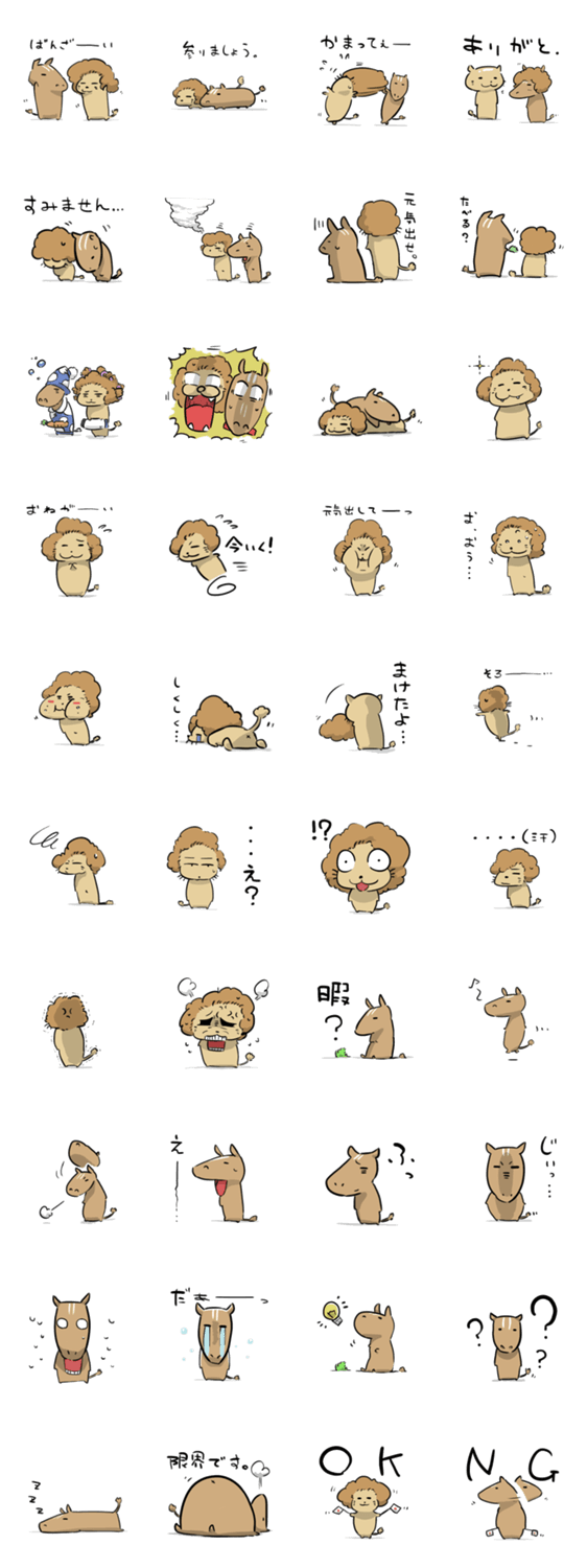ライオンくんとウマくんと k-brothers コメントをどうぞ ライオンくんとウマくんの、のんびりとした日常をスタンプにしました。2匹の種を超えた友情を堪能して下さい! このスタンプどう思う?!↓クリックで投票♪好き (0)かわいい (0)かっこいい (0)おもしろい (0)使いやすそう (0)欲しい (0)萌え (0)ほっこりする (0)おしゃれ (0)ゆるい (0)こわい (0)ウザい (0)キモい (0)ムカつく (0)持ってる (0)癒される (0)セクシー (0)個性的 (0)私は買わない (0)誰かプレゼントして! (0) 購入・プレゼントする Facebookでシェア Twitterでシェア