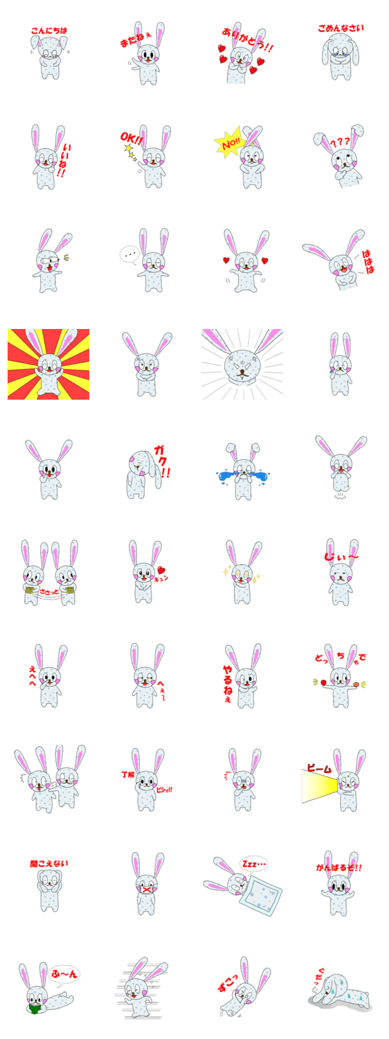 ラビスター ANIR.K コメントをどうぞ 子供が書いたウサギの絵をスタンプにしました。スター柄のウサギちゃんです。 このスタンプどう思う?!↓クリックで投票♪好き (0)かわいい (0)かっこいい (0)おもしろい (0)使いやすそう (0)欲しい (0)萌え (0)ほっこりする (0)おしゃれ (0)ゆるい (0)こわい (0)ウザい (0)キモい (0)ムカつく (0)持ってる (0)癒される (0)セクシー (0)個性的 (0)私は買わない (0)誰かプレゼントして! (0) 購入・プレゼントする Facebookでシェア Twitterでシェア