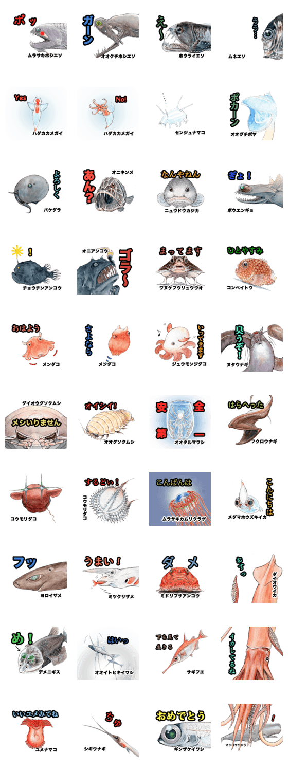 リアル深海生物 MQproject コメントをどうぞ 深海生物のリアルな姿が好きだ!そう思っているあなた(自分)の為に、こんなスタンプを作ってみました。(当方専門家ではない為、資料価値はありません。) このスタンプどう思う?!↓クリックで投票♪好き (0)かわいい (0)かっこいい (0)おもしろい (0)使いやすそう (0)欲しい (0)萌え (0)ほっこりする (0)おしゃれ (0)ゆるい (0)こわい (0)ウザい (0)キモい (0)ムカつく (0)持ってる (0)癒される (0)セクシー (0)個性的 (0)私は買わない (0)誰かプレゼントして! (0) 購入・プレゼントする Facebookでシェア Twitterでシェア