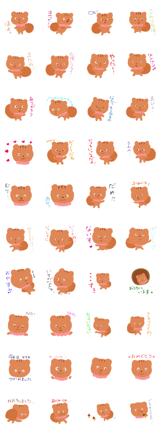 リスの毎日 くるみ コメントをどうぞ かわいいりすの毎日を描いたスタンプです。 このスタンプどう思う?!↓クリックで投票♪好き (0)かわいい (0)かっこいい (0)おもしろい (0)使いやすそう (0)欲しい (0)萌え (0)ほっこりする (0)おしゃれ (0)ゆるい (0)こわい (0)ウザい (0)キモい (0)ムカつく (0)持ってる (0)癒される (0)セクシー (0)個性的 (0)私は買わない (0)誰かプレゼントして! (0) 購入・プレゼントする Facebookでシェア Twitterでシェア